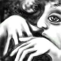 April 15, 1998: Sitting at the desk in my studio this morning, I picked up a pastel pencil and made a small Visage sketch, a woman with her hand over her mouth, her eyes closed. Thinking. I made a second small sketch with a pen, thinking about nothing in particular except the gesture.